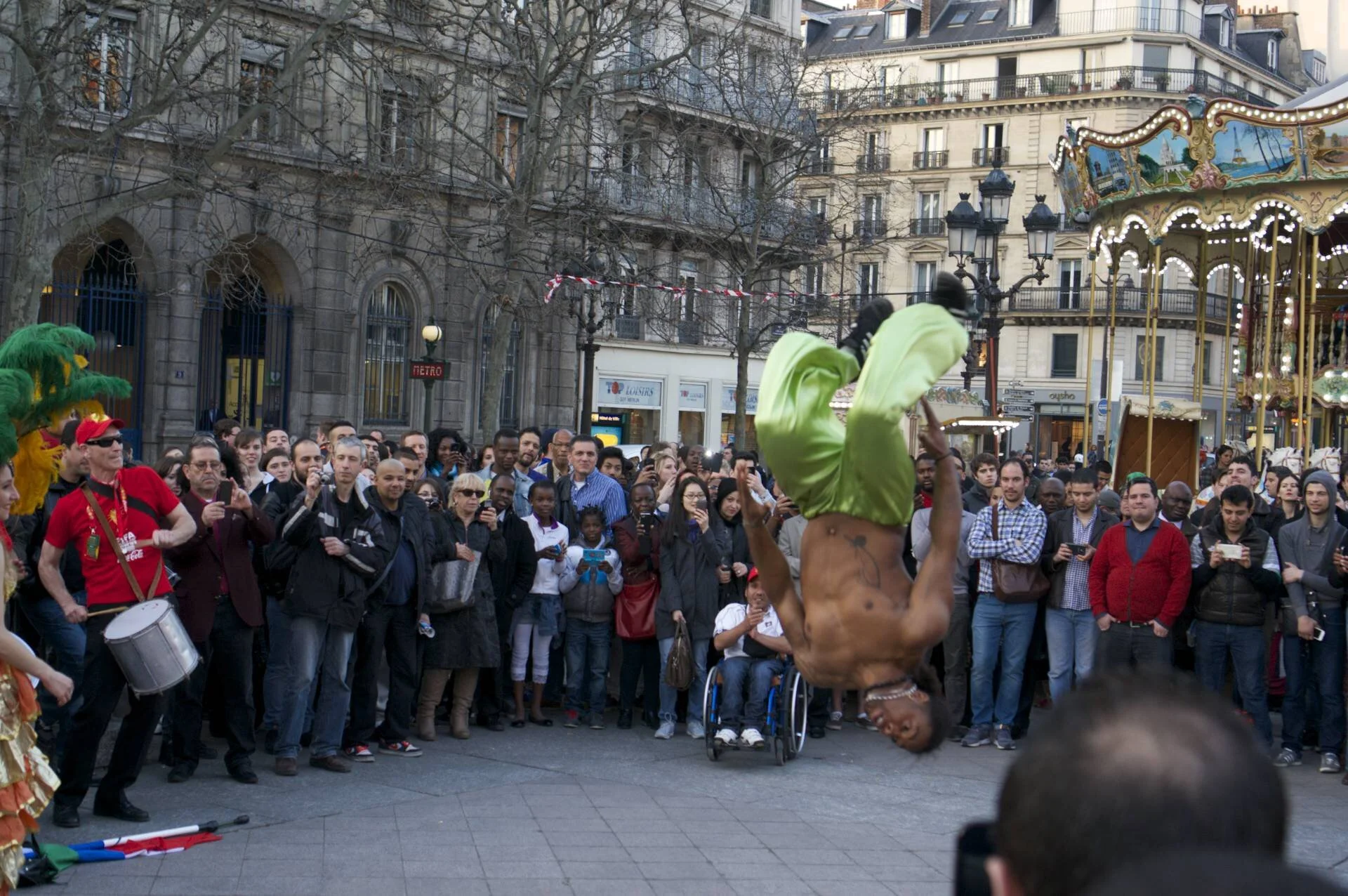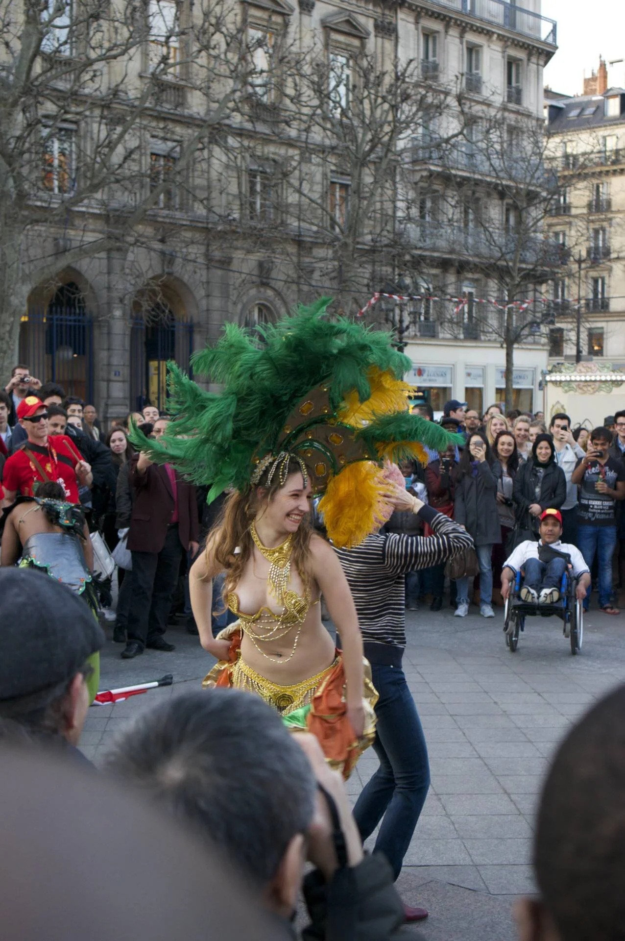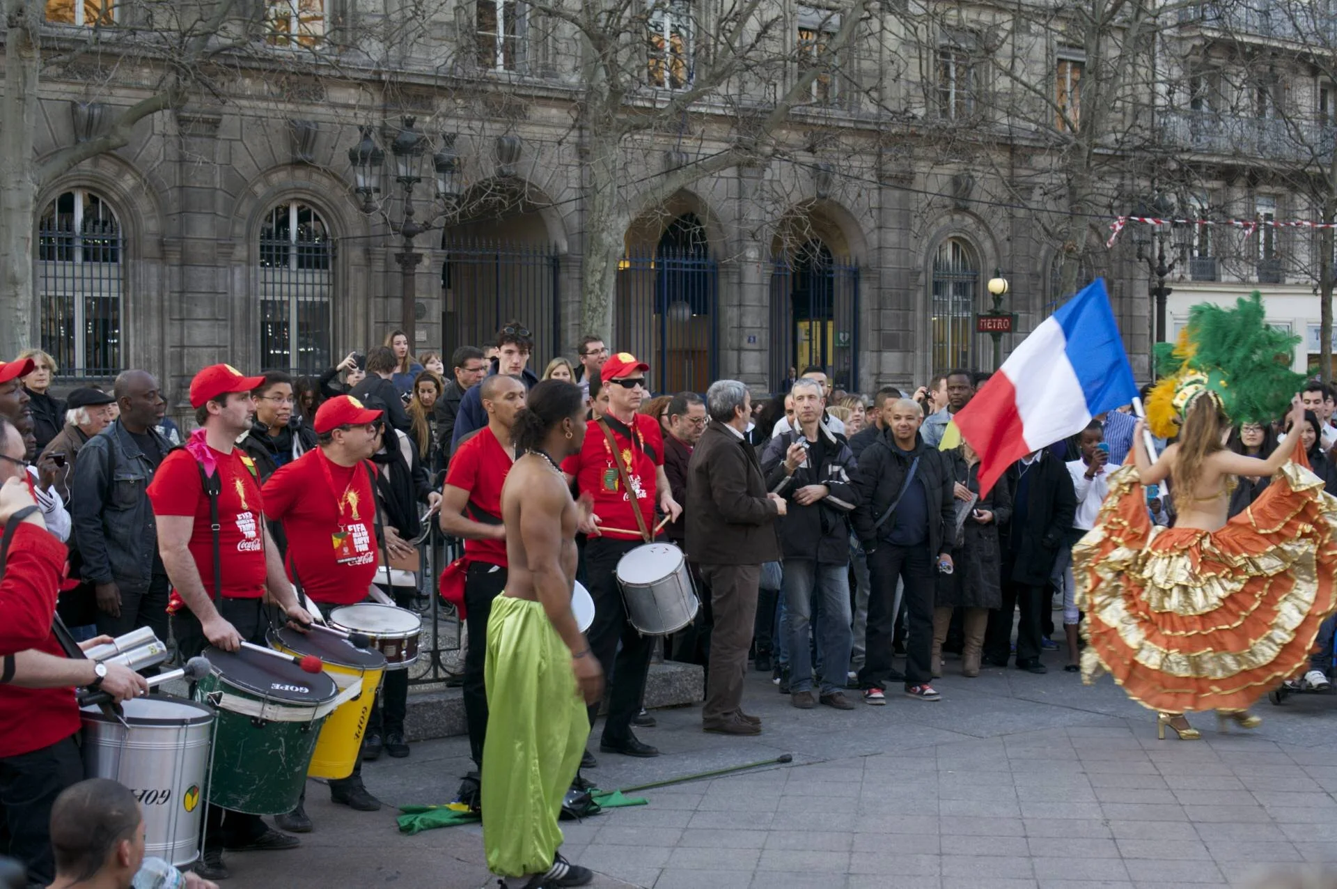 bringing a little Brazil to Paris. the line was too long to actually see the trophy, but watched the festivities outside.